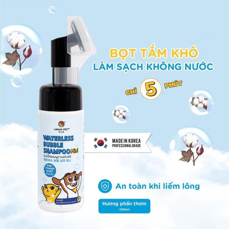 Bọt Tắm Khô Cho Chó Mèo Hana Pet Mini 130ml