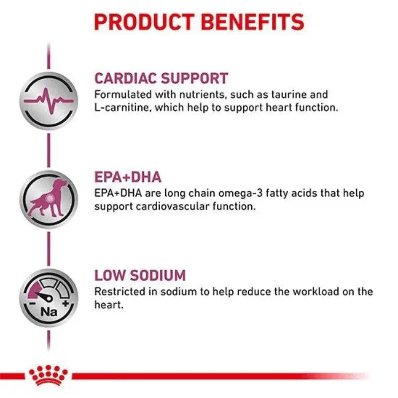 - Royal Canin Cardiac là thức ăn cho chó được pha chế đặc biệt để giúp hỗ trợ tim mạch và giảm các triệu chứng của suy tim sung huyết. Sản phẩm này được thiết kế để giúp chó kiểm soát huyết áp, giảm phù nề và cải thiện chức năng tim.