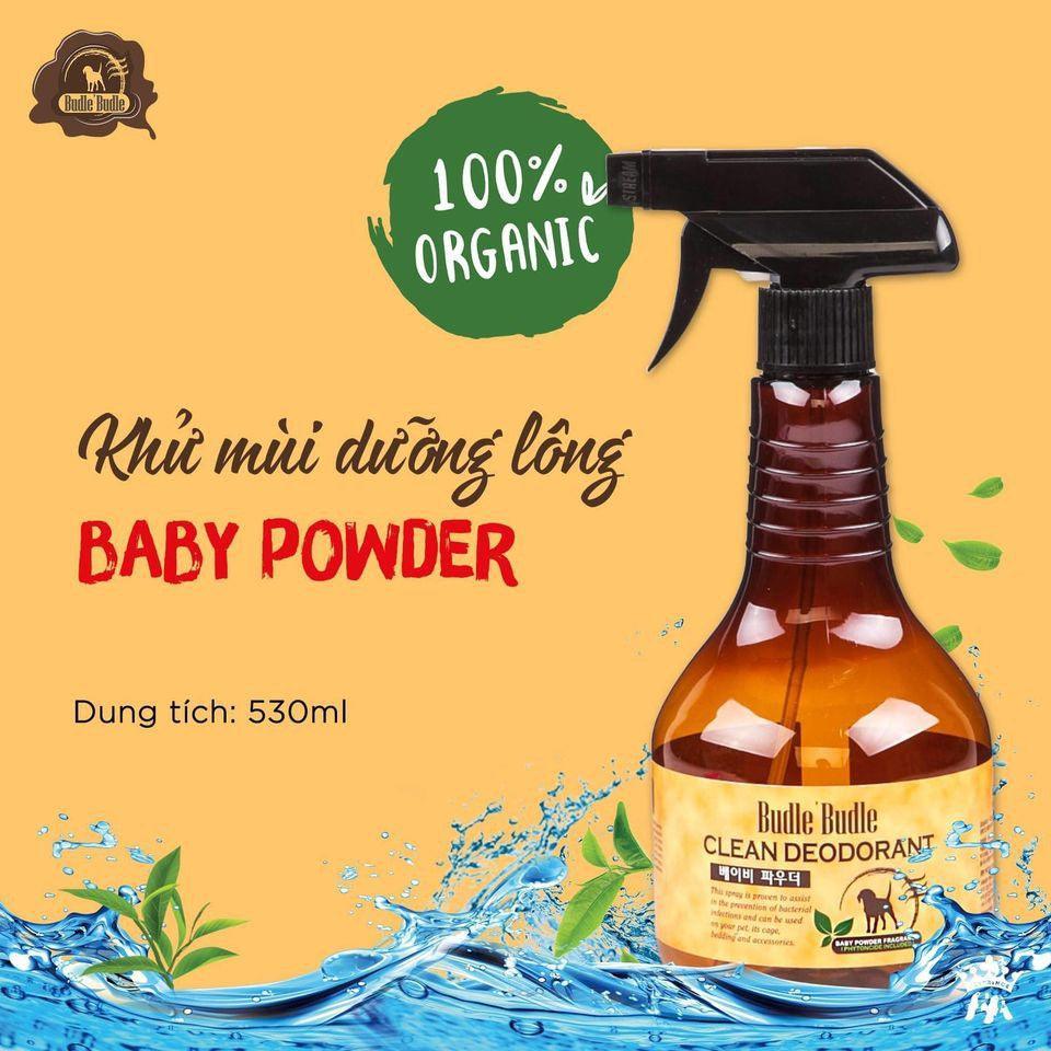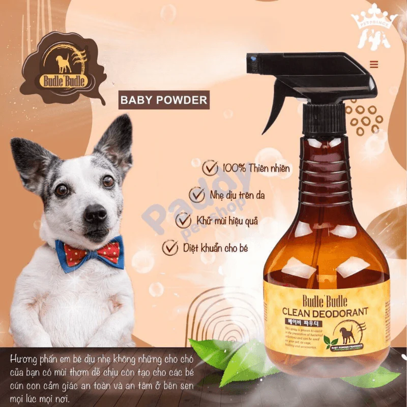 Xịt khử mùi dưỡng lông Budle’Budle với công thức đến từ thiên nhiên, hoàn toàn lành tính và an toàn với thú cưng của bạn. Xịt khử mùi dưỡng lông Budle’Budle là giải pháp làm sạch khi không thể tắm gội thường xuyên.