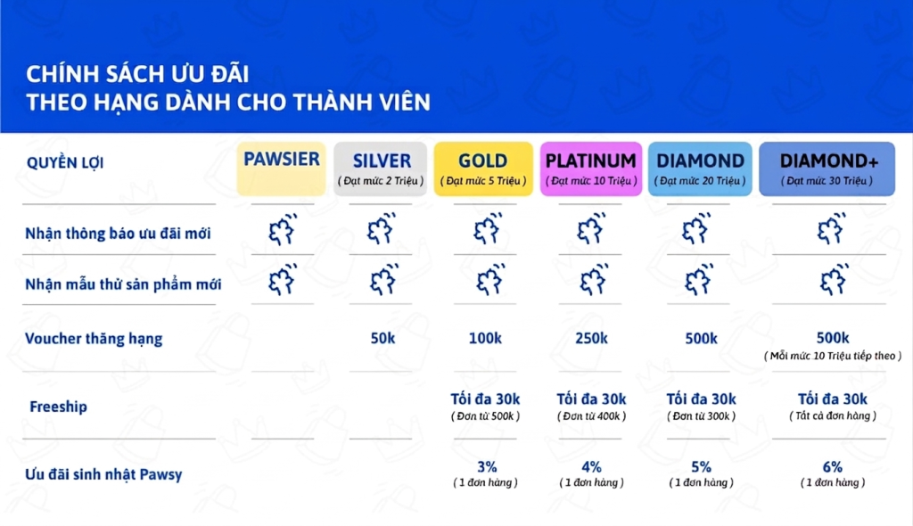 2. Chương trình khách hàng thân thiết – Pawsier Membership mới (01/07/2025)